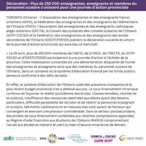 Les syndicats de l’éducation de l’Ontario s’unissent : le budget confirme l’urgence de négociations anticipées En savoir plus » mars 26, 2026